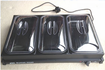 Hotplates, 3 trays each, 1 black, 1 silver